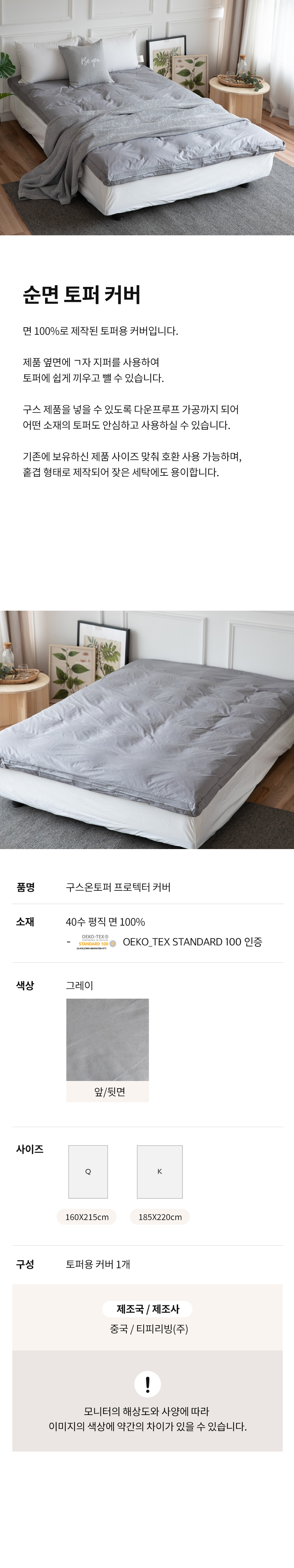 갤러리아 순면 토퍼커버 (그레이) 185x220 cm