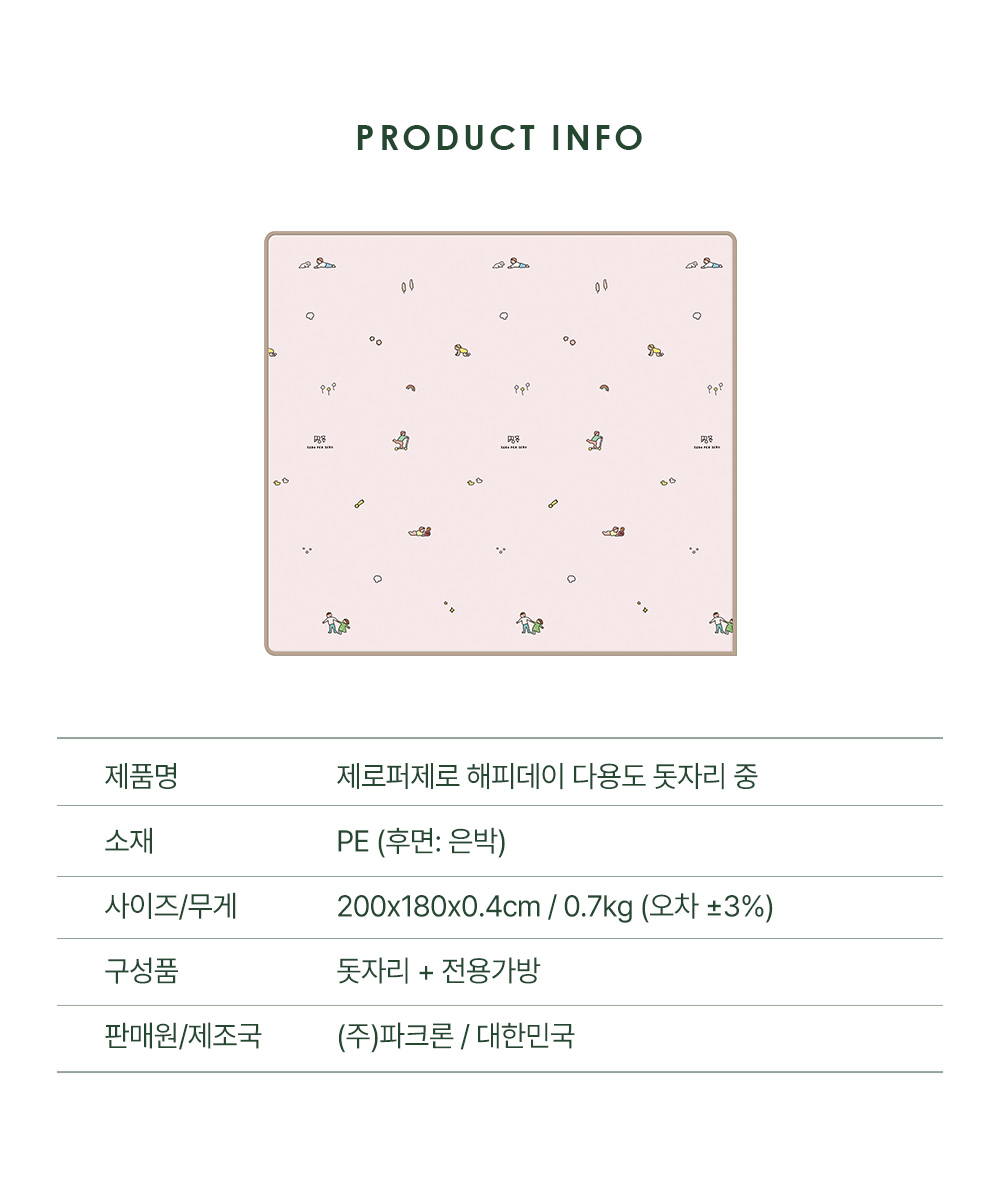 다용도 돗자리 제로퍼제로 해피데이 중형 180x200