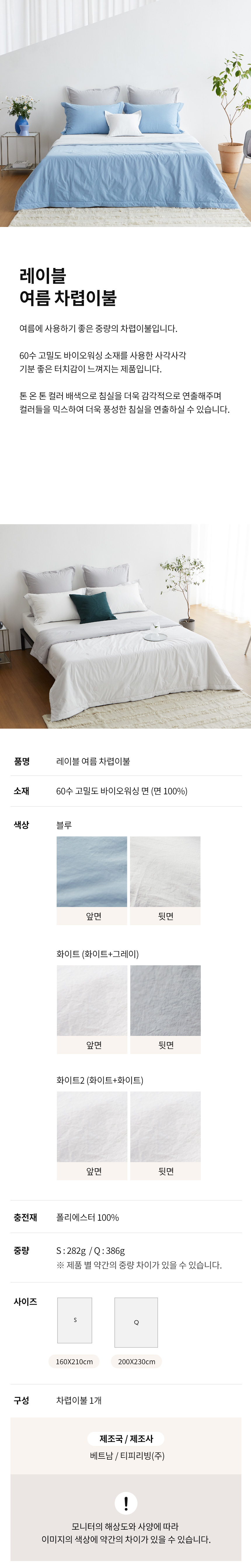 (롯데백화점)레이블2 고밀도순면 차렵이불 S (여름)