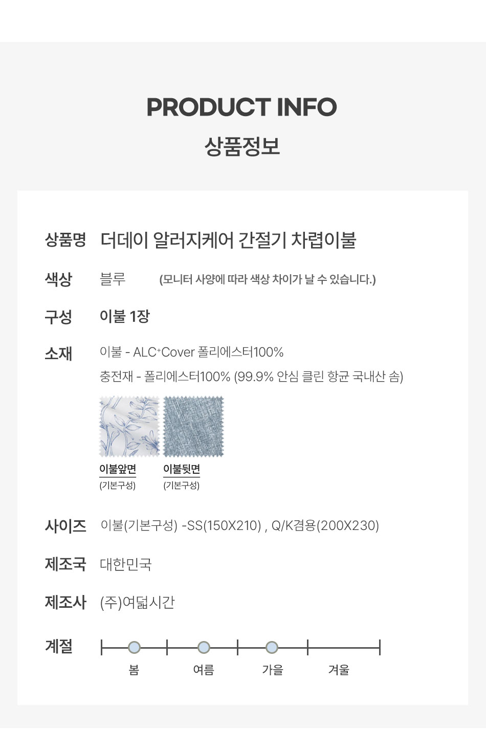 (롯데백화점)더데이 알_러지케어 간절기 차렵이불 Q