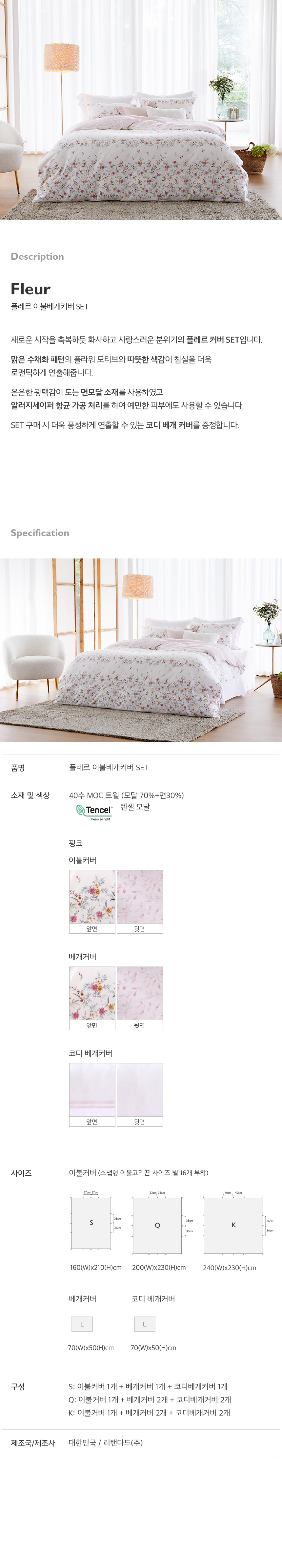 (롯데백화점)플레르 면모달 이불베개코디베개커버 세트 K