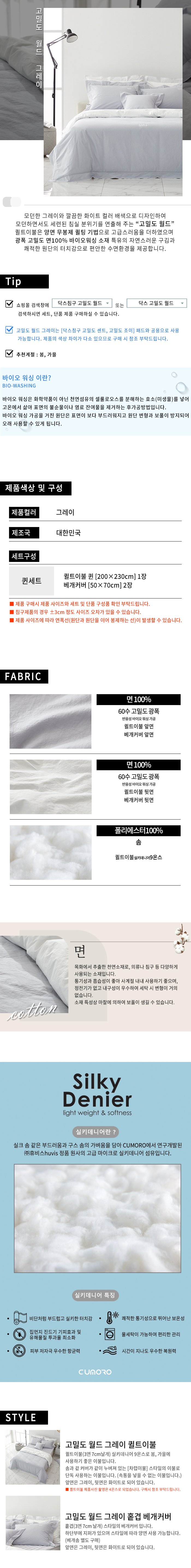 (신세계의정부점)고밀도 월드 그레이9 퀸세트퀼트이불+베개커버2장
