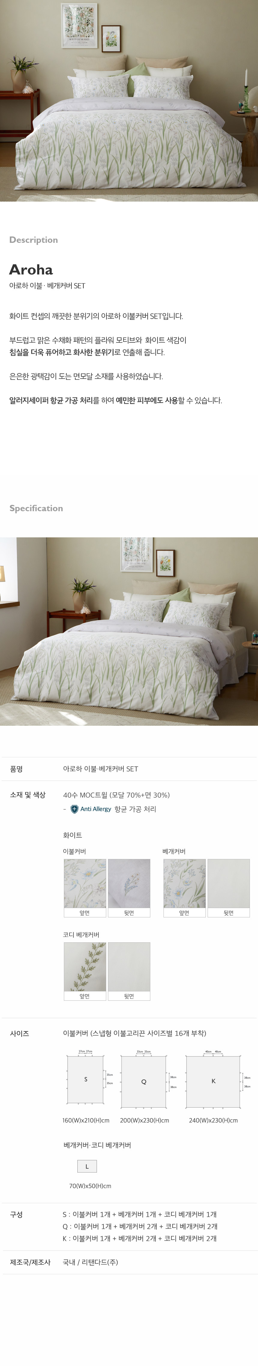 갤러리아 아로하 면모달 이불베개커버세트 Q(+항균)