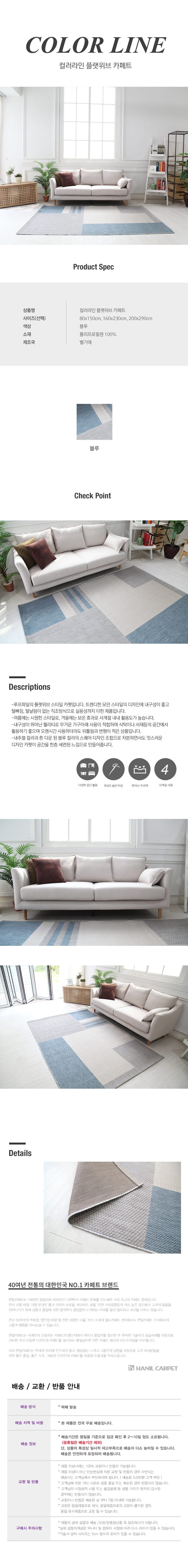 (롯데백화점)벨기에산 컬러라인 플랫위브 카페트 (200x290cm)