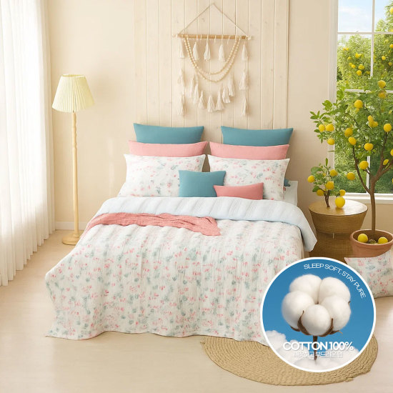 (롯데백화점)피콜라 코튼 100 여름 순면 줄누비이불풀세트 퀸(Q)