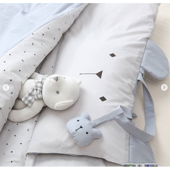 요에는 도톰한 일반솜을 이불에는 부드러운 저데니아솜을 사용하여 아이에게 포근한 잠자리를 제공합니다.
