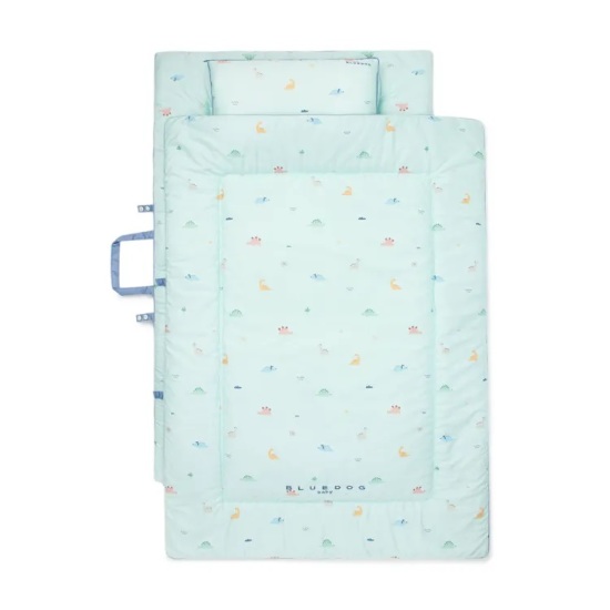 아이들이 좋아하는 공룡패턴이 그려진 이불,요패드,베개SET로 구성된 일체형 낮잠이불입니다