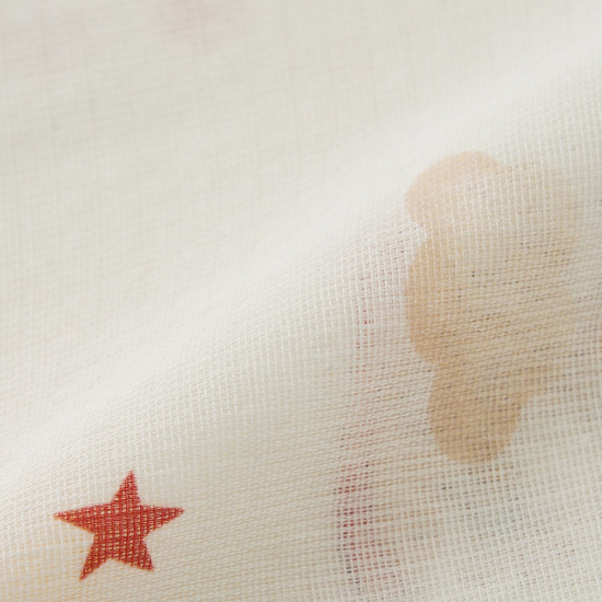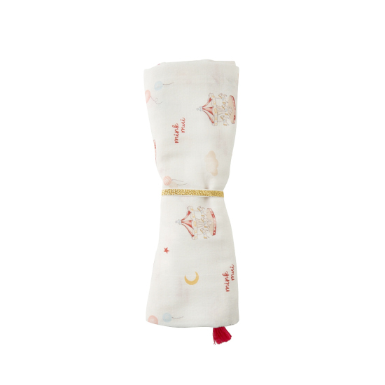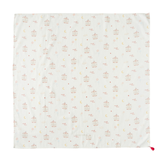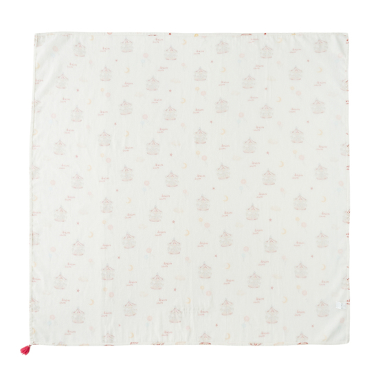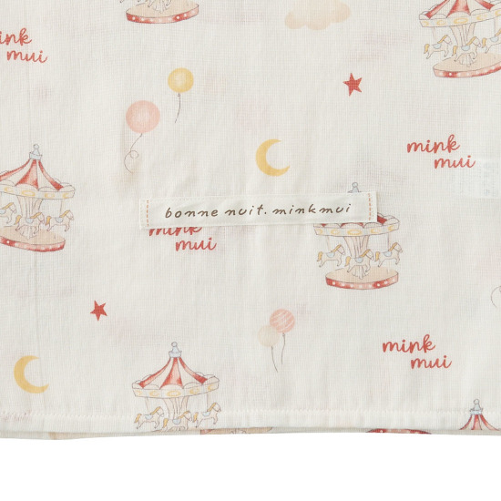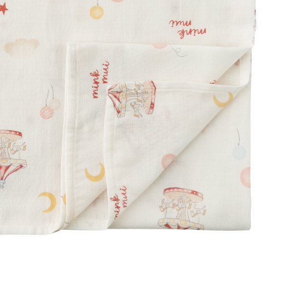 동화적인 회전목마 모티브가 포인트인 '드림랜드' 패턴의 뱀부이중직 격자 거즈 담요입니다.