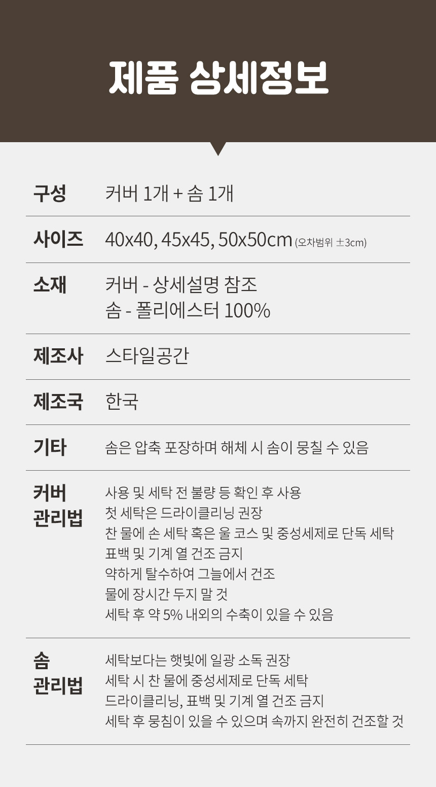 스타일공간 솜포함 푹신한 방석 쇼파 의자 식탁 쿠션