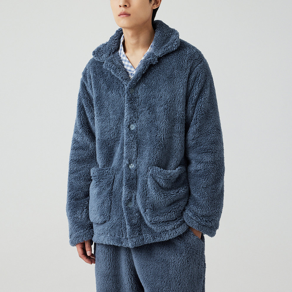 부드럽고 보온성이 우수한 극세사 소재를 사용한 남성 파자마 셔츠입니다.