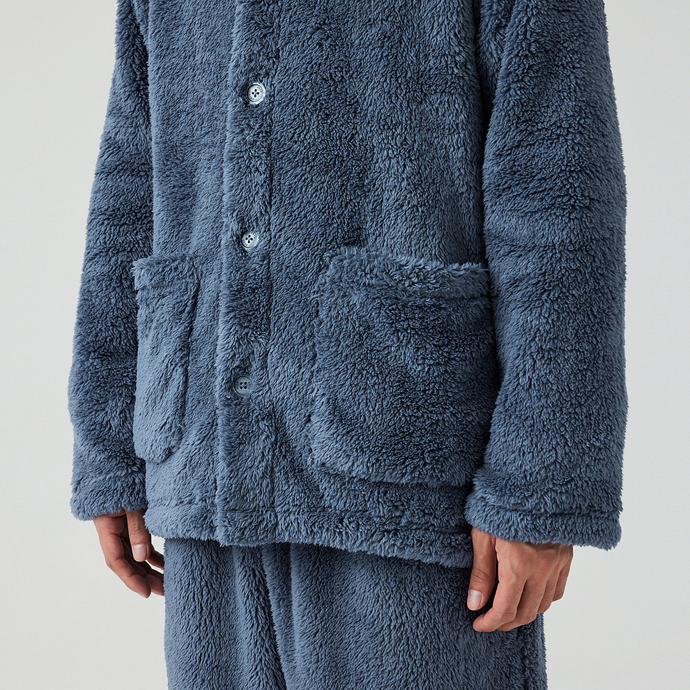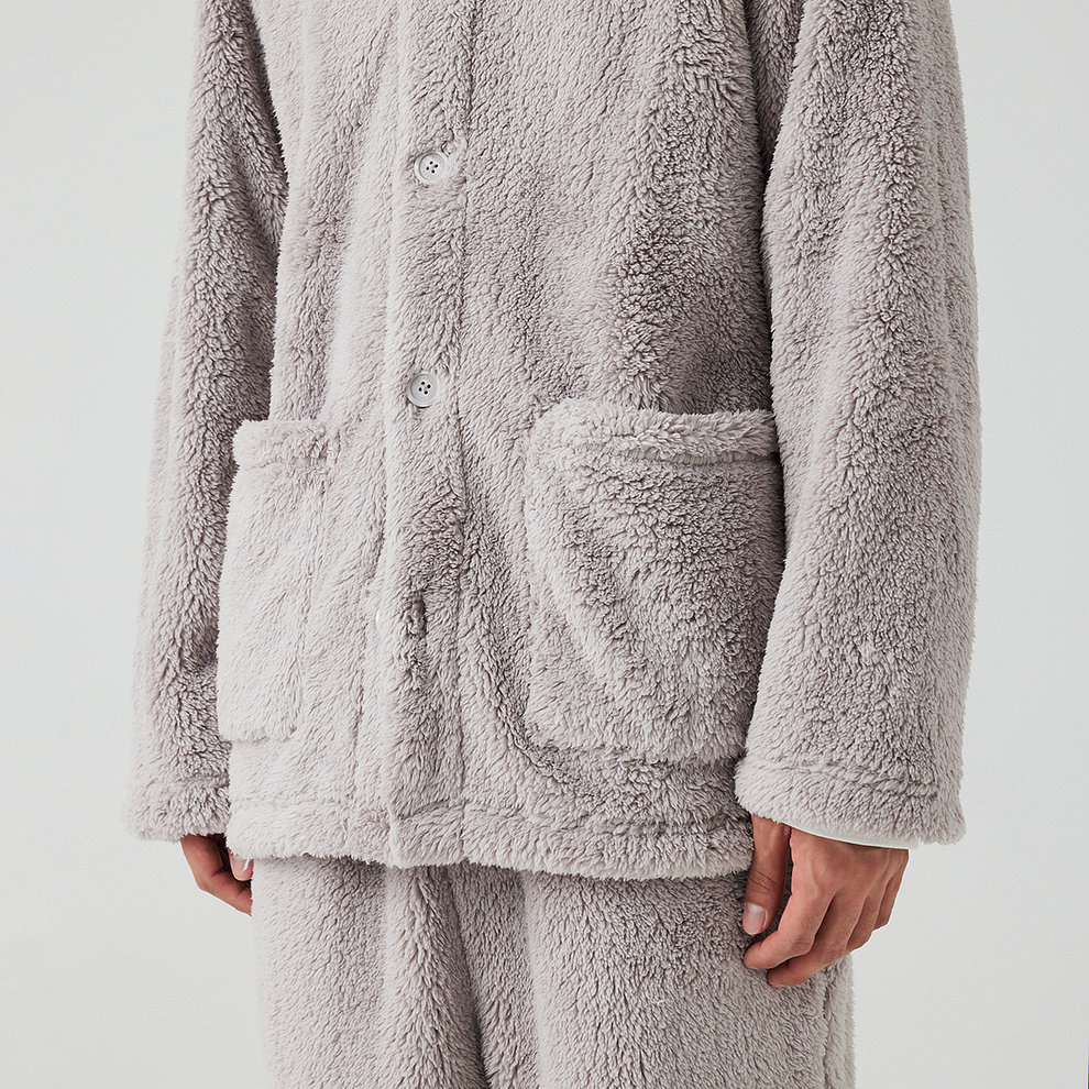 남 극세사 플랫 카라 파자마 셔츠