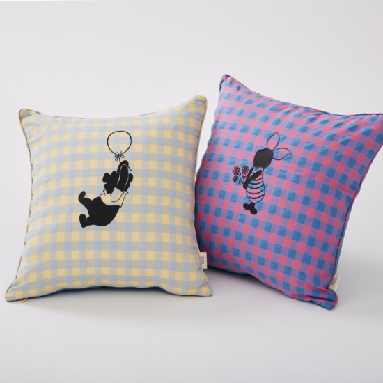 (롯데백화점)(디즈니홈)체크푸우체크피글렛 홑겹쿠션커버 50x50