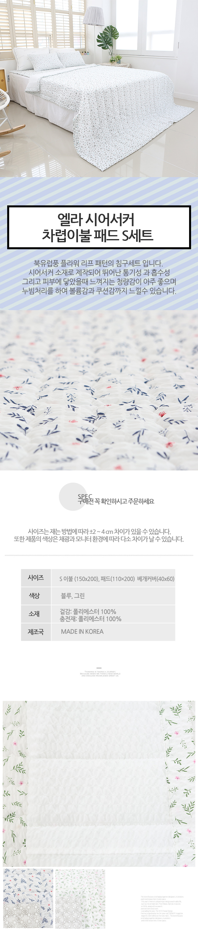 치수 : 이불 150×200, 패드 110×200, 베개커버 40×60