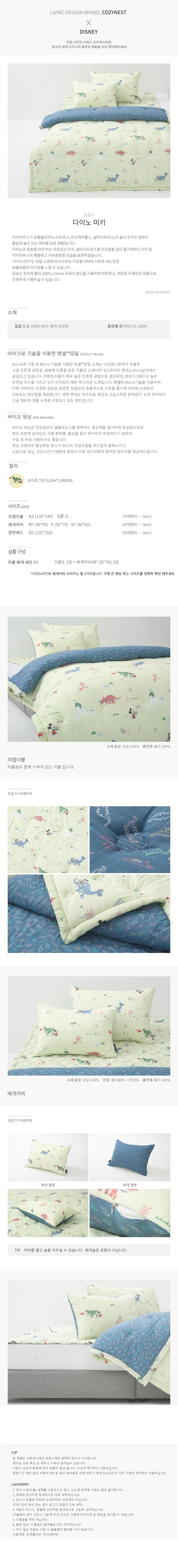 (롯데백화점)(디즈니홈)다이노미키 차렵이불 베개세트 KS (사계절)(30x45베개커버구성)