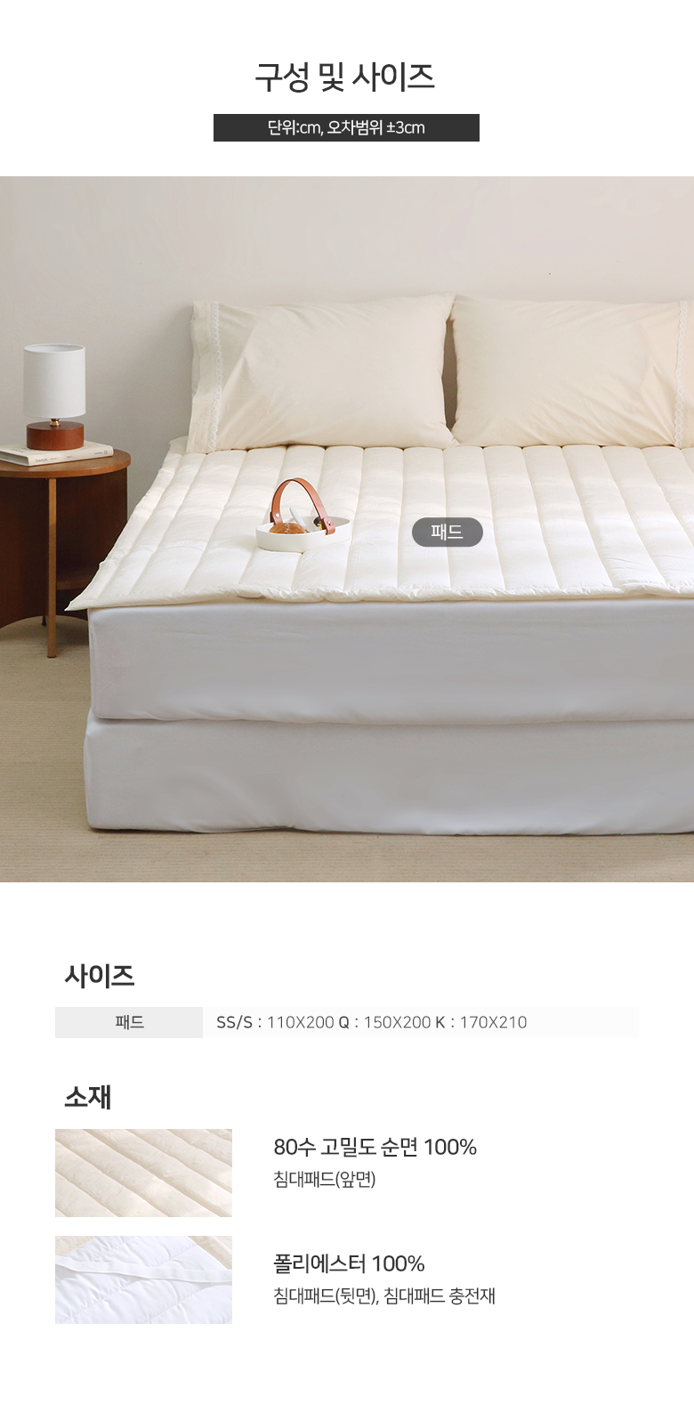 본상품구성 | 침대패드 SS/Q/K |