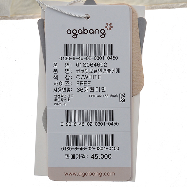 제조자 : (주)아가방앤컴퍼니(AGABANG&COMPANY)