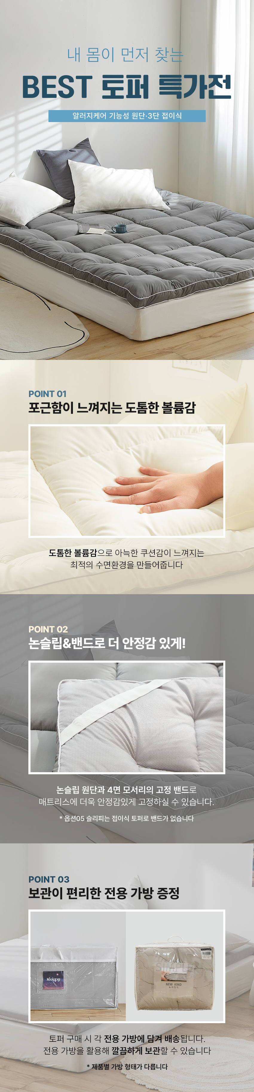 내 몸이 찾는 토퍼 알러지케어 기능성/논슬립/밴딩/3단 접이식