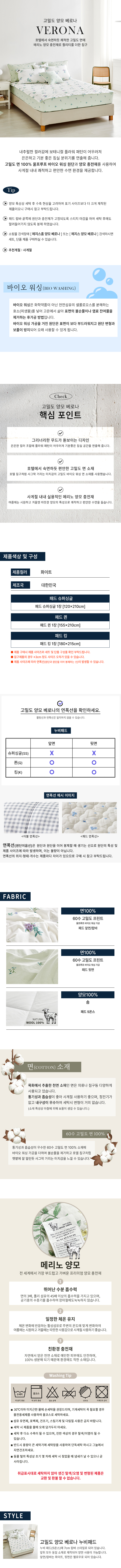 고밀도 양모 베로나 패드 슈퍼싱글퀸킹