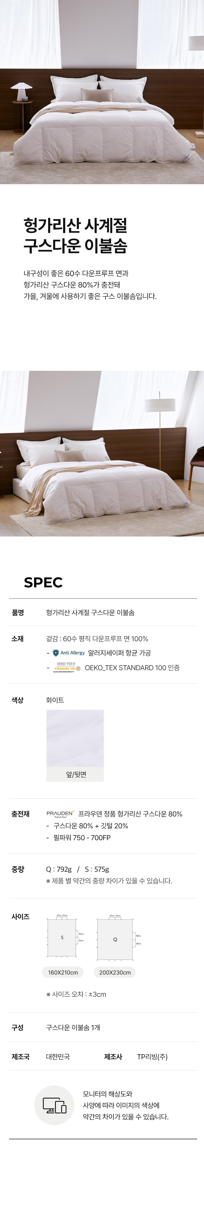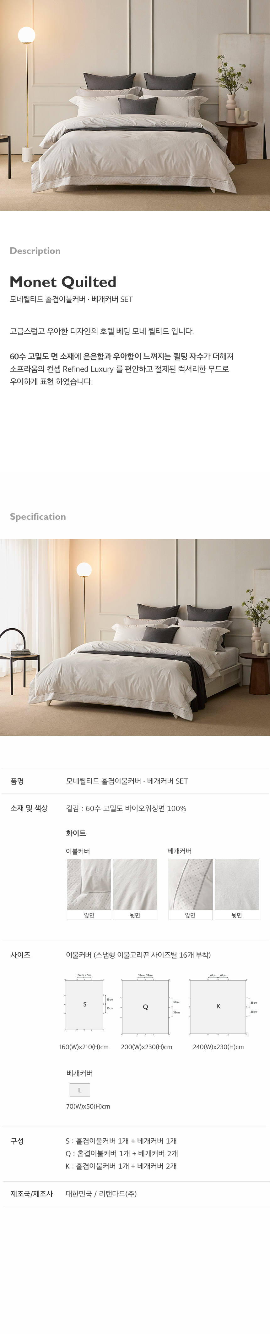 (롯데백화점)헝가리산 구스다운 이불솜+ 이불베개커버 세트 S (모네퀼티드)