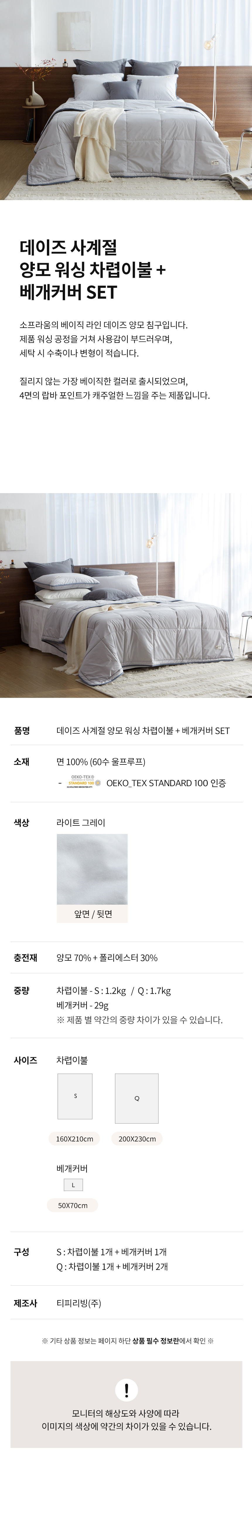 (롯데백화점)데이즈 워싱 양모 차렵이불 세트 Q (사계절) 연그레이
