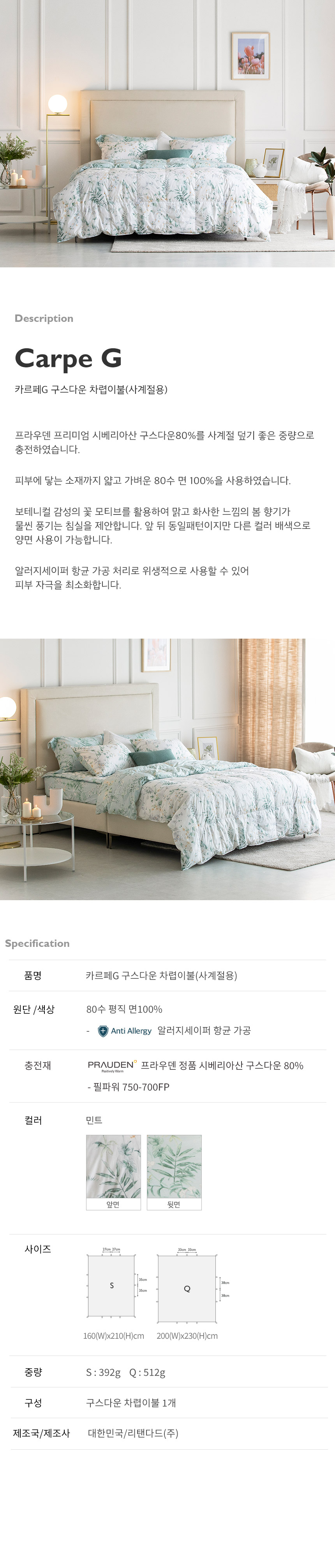 (롯데백화점)카르페G 시베리아산 구스차렵이불 S