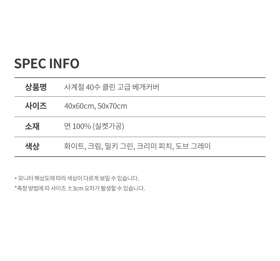 (현대Hmall)헬렌스타인 사계절 40수 클린고급 베개커버 40x60/50x70