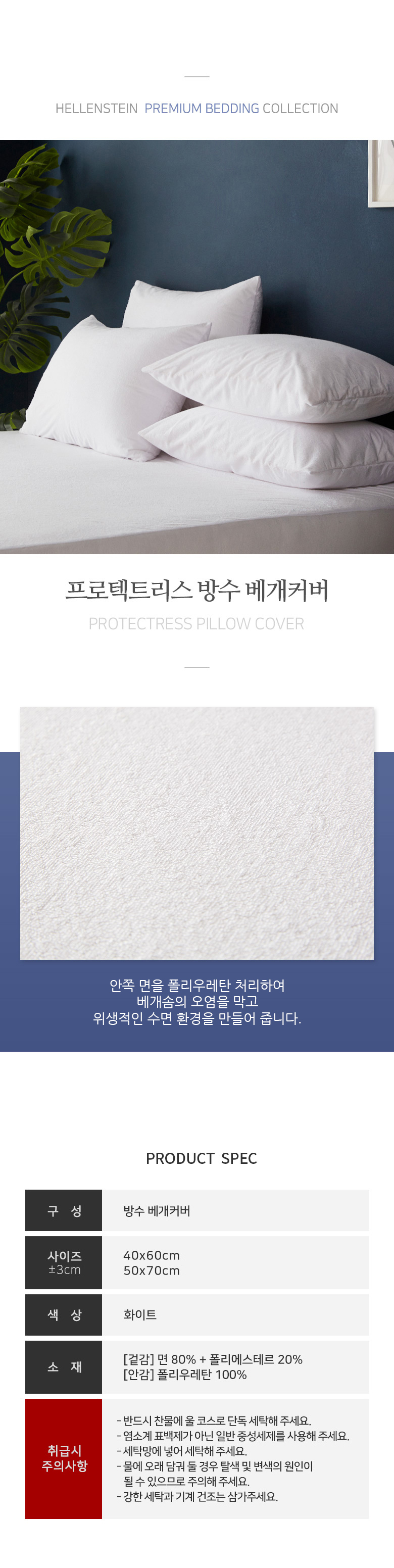 본상품구성 [헬렌스타인]프로텍트리스 방수베개커버 2장 세트