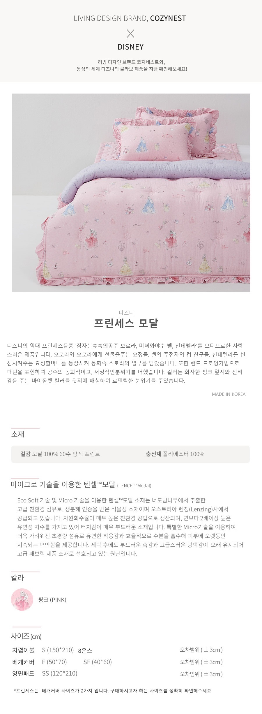 (롯데백화점)(디즈니홈)프린세스 누비베개커버 F
