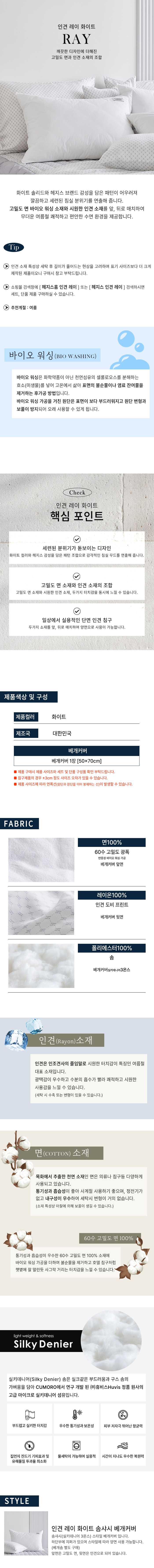 인견 레이 화이트 베개커버