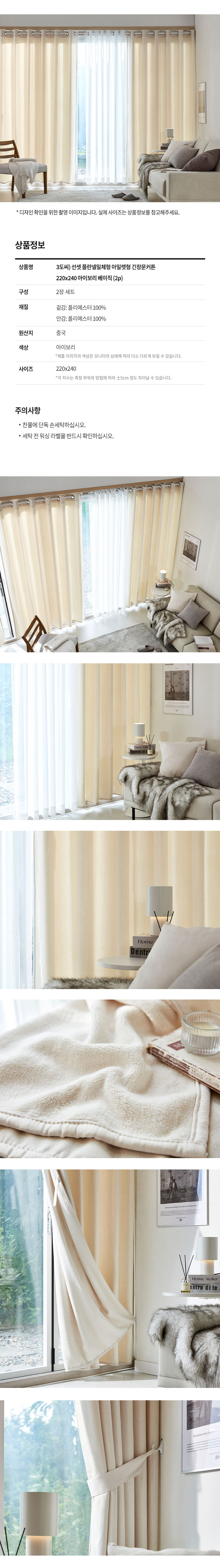 (현대Hmall)모던하우스 3도씨 선셋 플란넬일체형 아일렛형 긴창문커튼 220x240 아이보리 2p