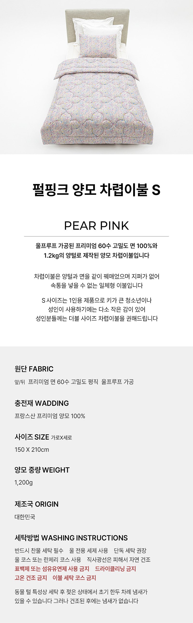 (신세계타임스퀘어점리빙관)크리스피바바 펄핑크 1.2kg 양모차렵이불 (S) 150X210cm