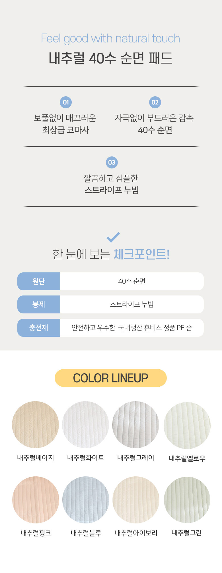 내추럴 순면 40수 밴딩 침대패드 SSQKEK 8colors