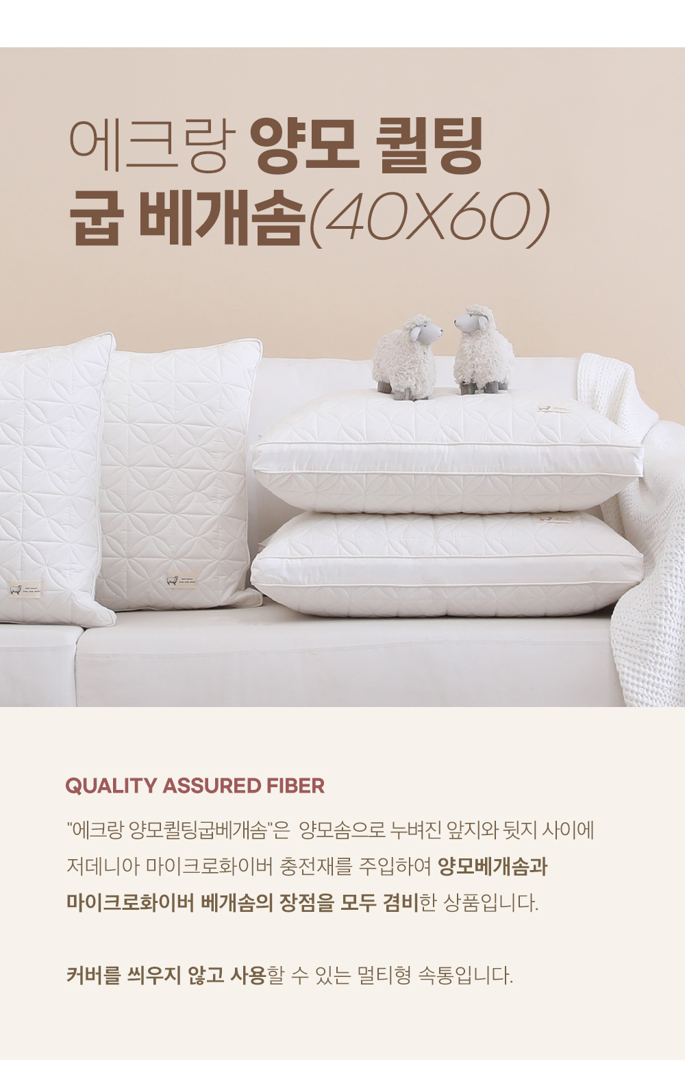 (롯데백화점)에크랑 양모 퀼팅 굽 베개솜(40X60)