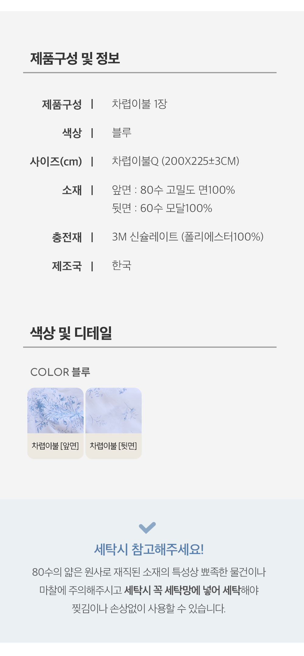 (롯데백화점)퀸스베리 3M 80수 고밀도 면 모달 간절기 차렵이불Q