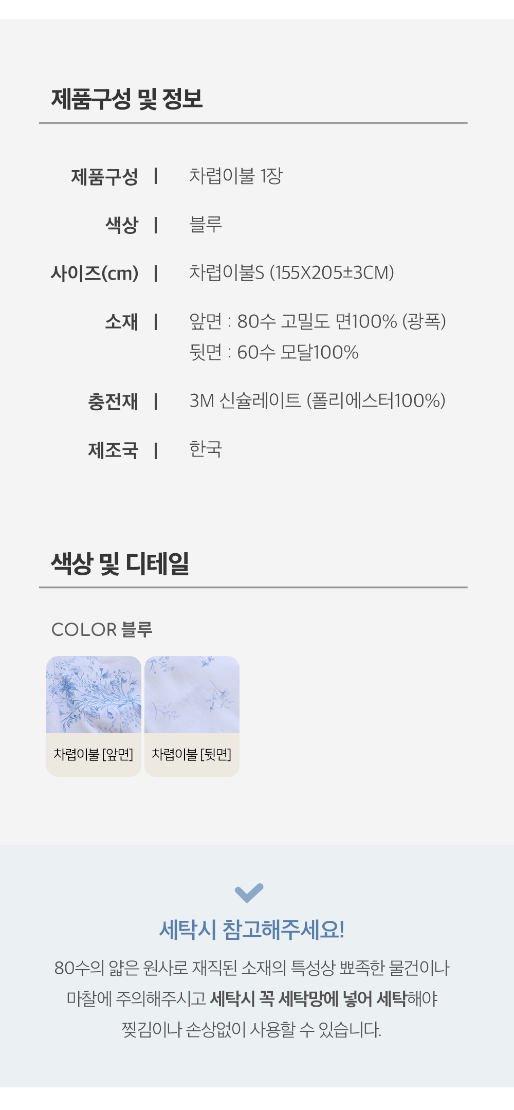 (롯데백화점)퀸스베리 3M 80수 고밀도 면 모달 간절기 차렵이불S