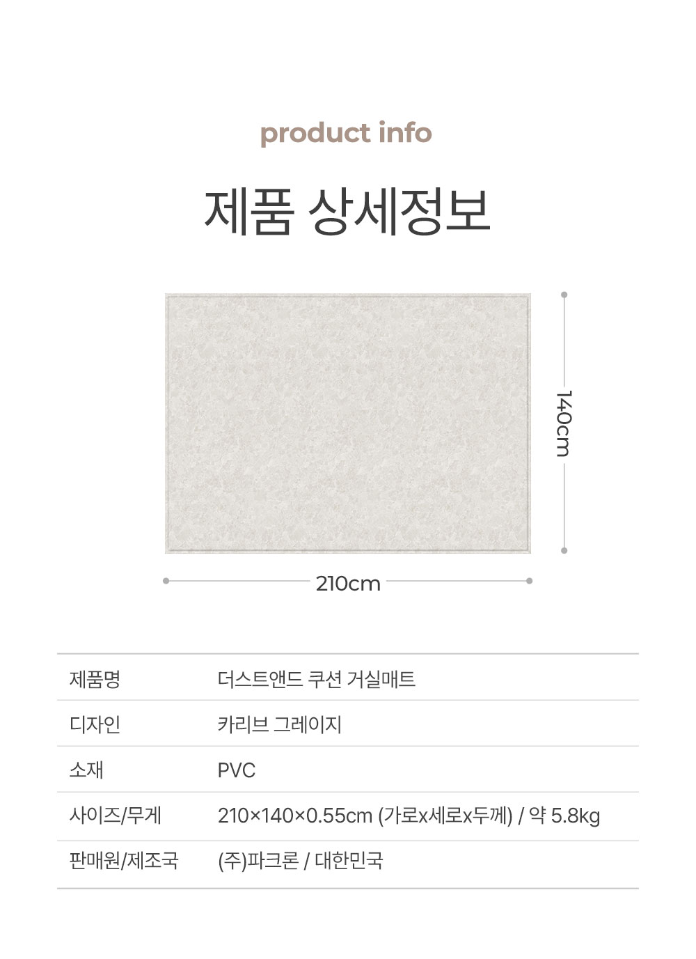 더스트앤드 쿠션 거실매트 카리브그레이지 210 (210x140x0.55cm)