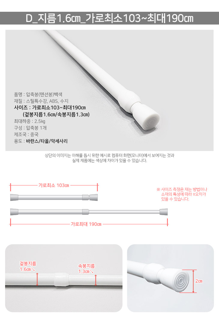 (현대Hmall)커튼봉 길이조절 압축봉_지름1.6cm_가로최소103∼최대190cm