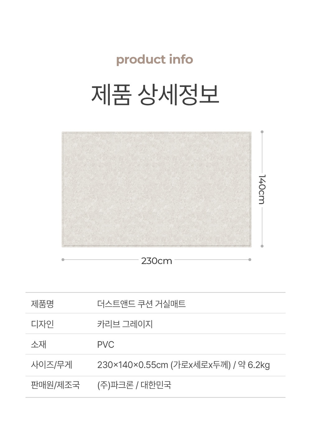 더스트앤드 쿠션 거실매트 카리브그레이지 230 (230x140x0.55cm)