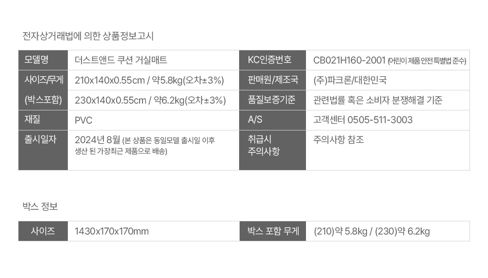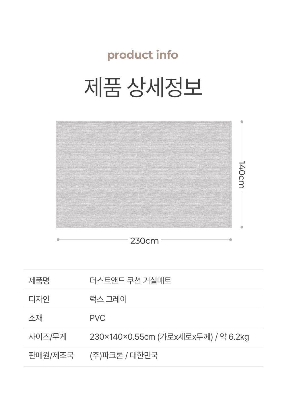 더스트앤드 쿠션 거실매트 럭스그레이 230 (230x140x0.55cm)