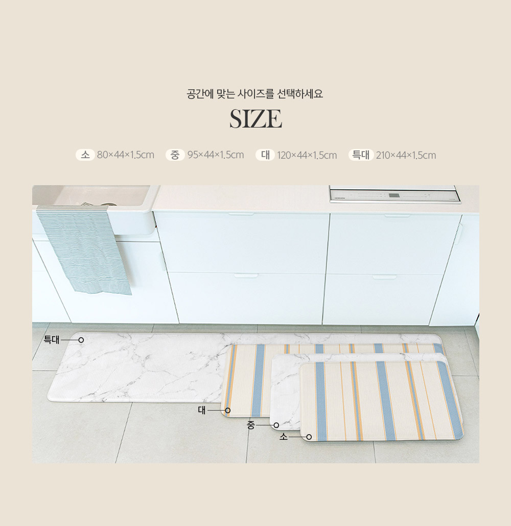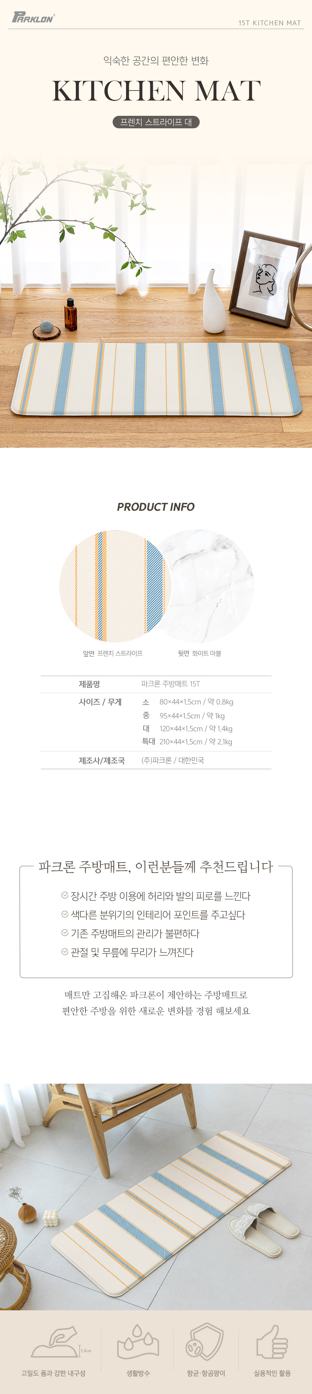 파크론 프렌치스트라이프 주방매트 (대) 120x44x1.5cm 주방매트/발매트