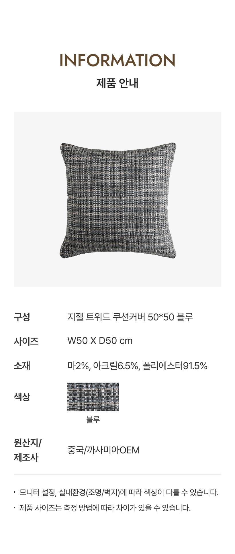 지젤 트위드 쿠션커버 5050_블루