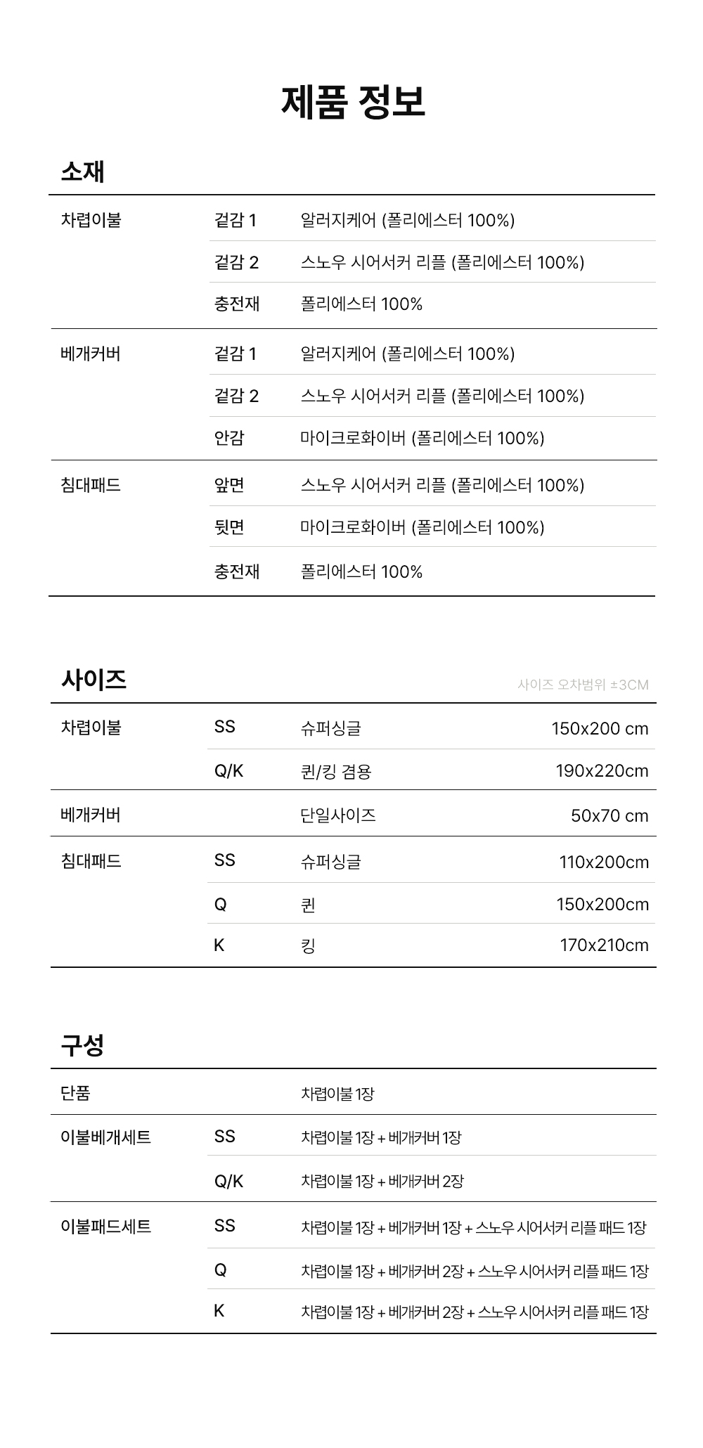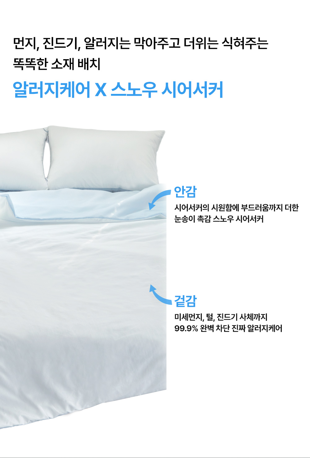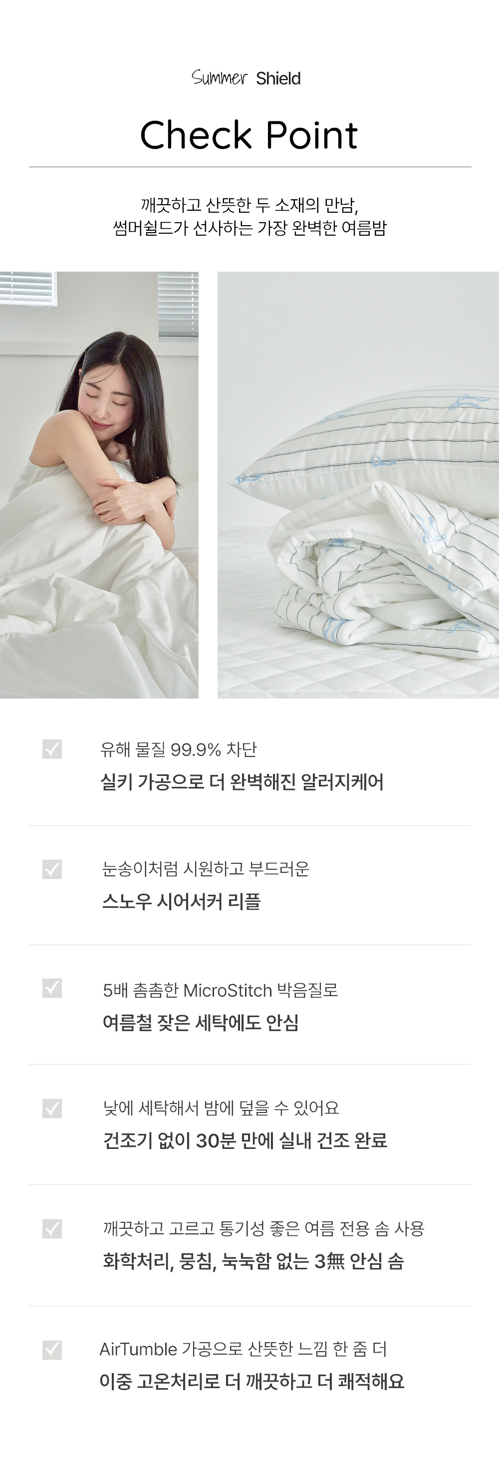 썸머쉴드 알러지케어 스노우 시어서커 리플 여름 차렵이불 패드세트K 8co