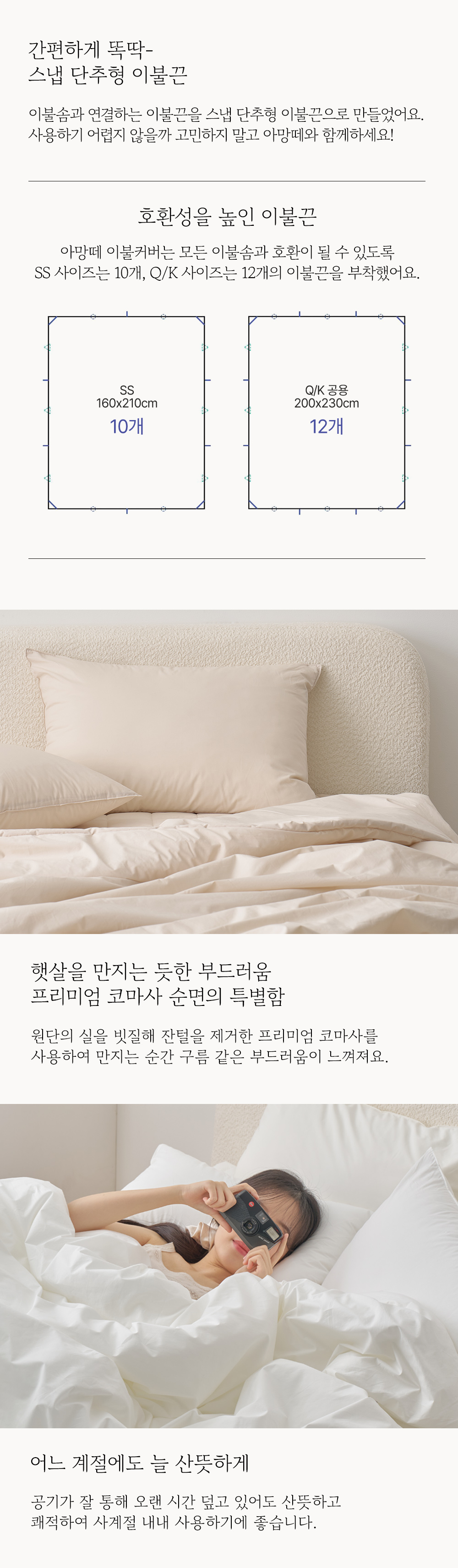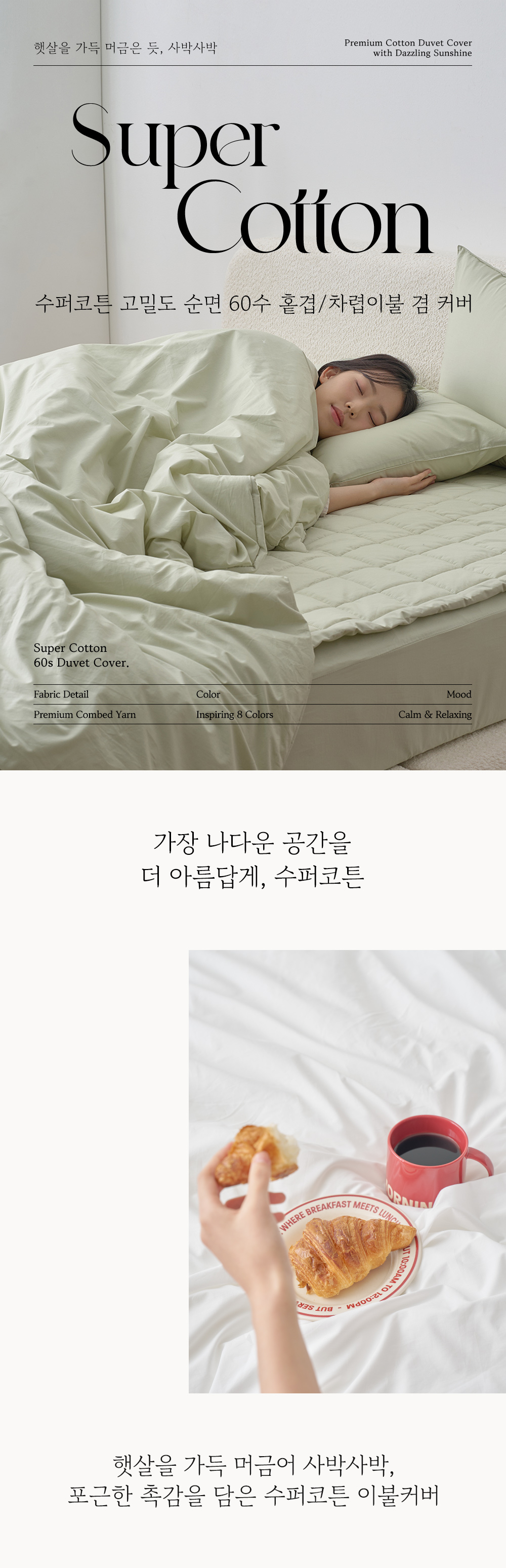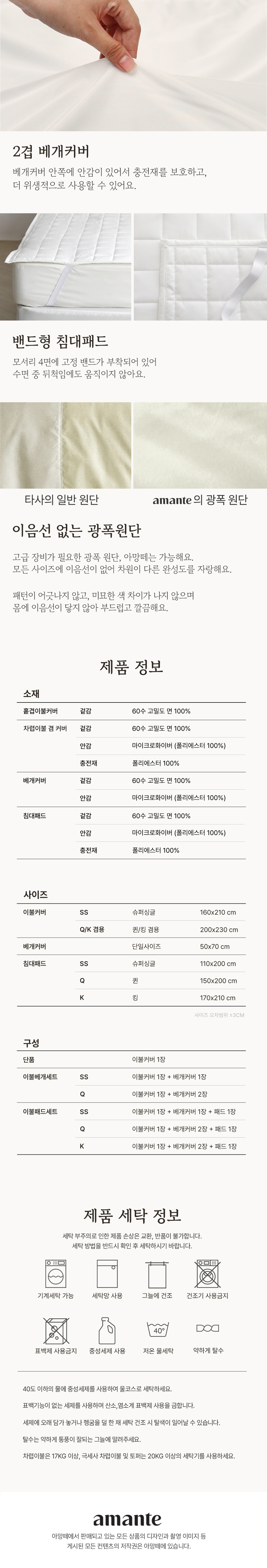 수퍼코튼 60수 고밀도 순면 누빔이불커버 베개세트Q 8color