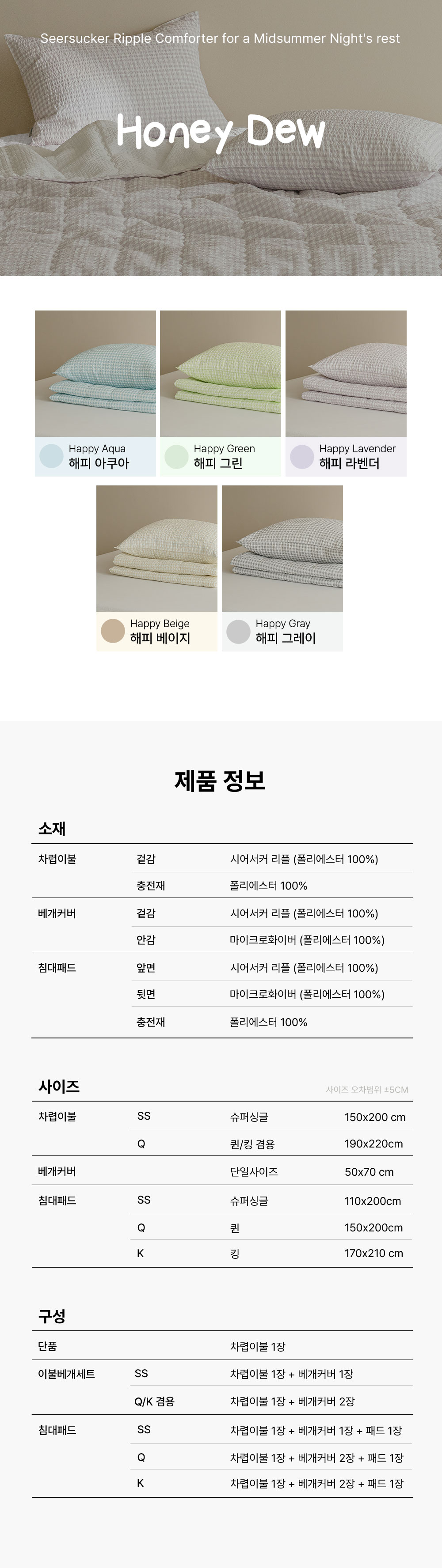 아망떼 허니듀 시어서커 리플 체크 차렵이불베개세트Q 5color..35306840