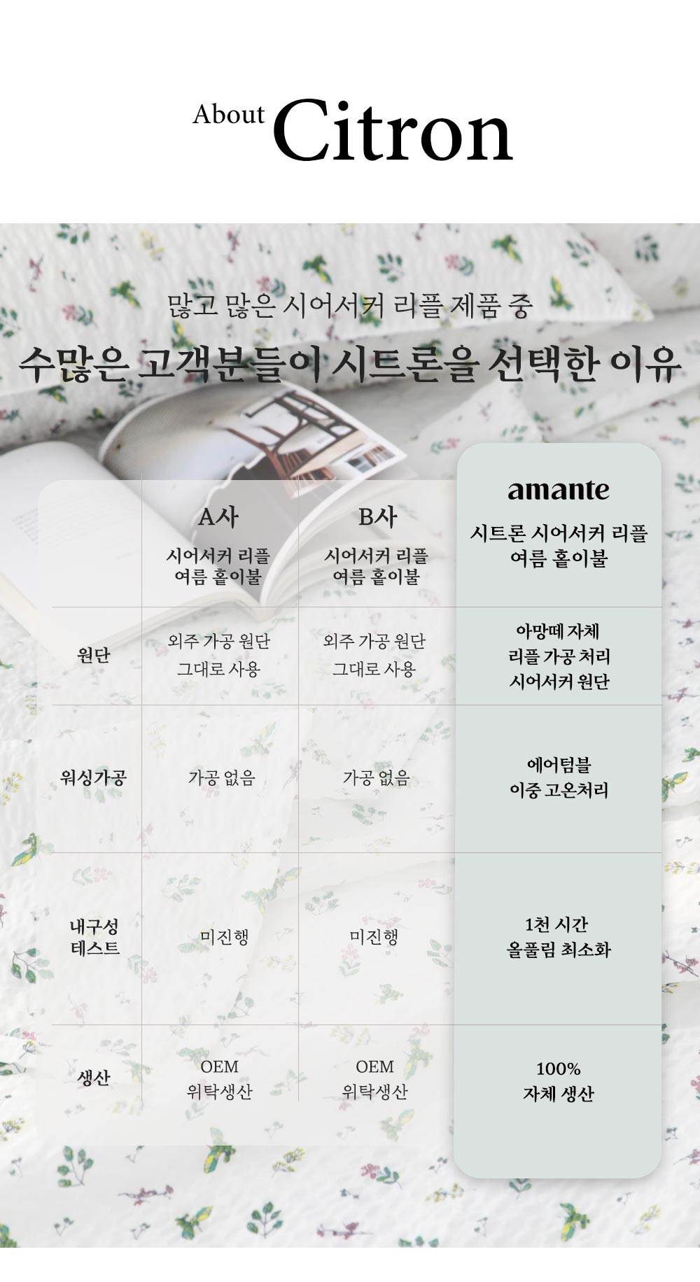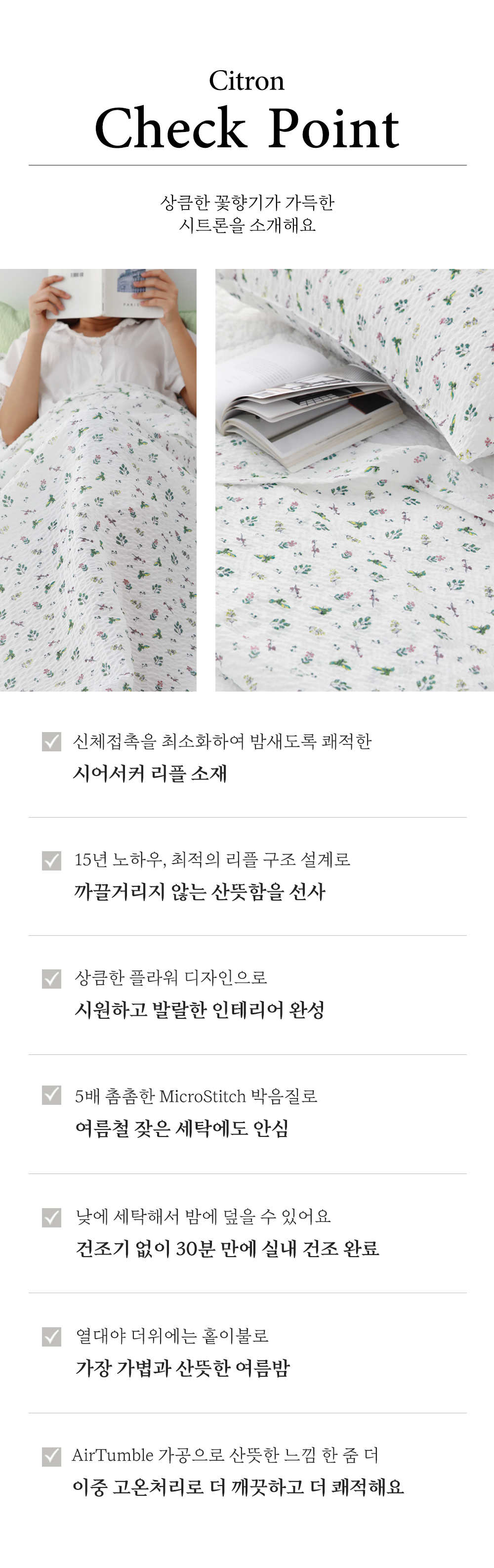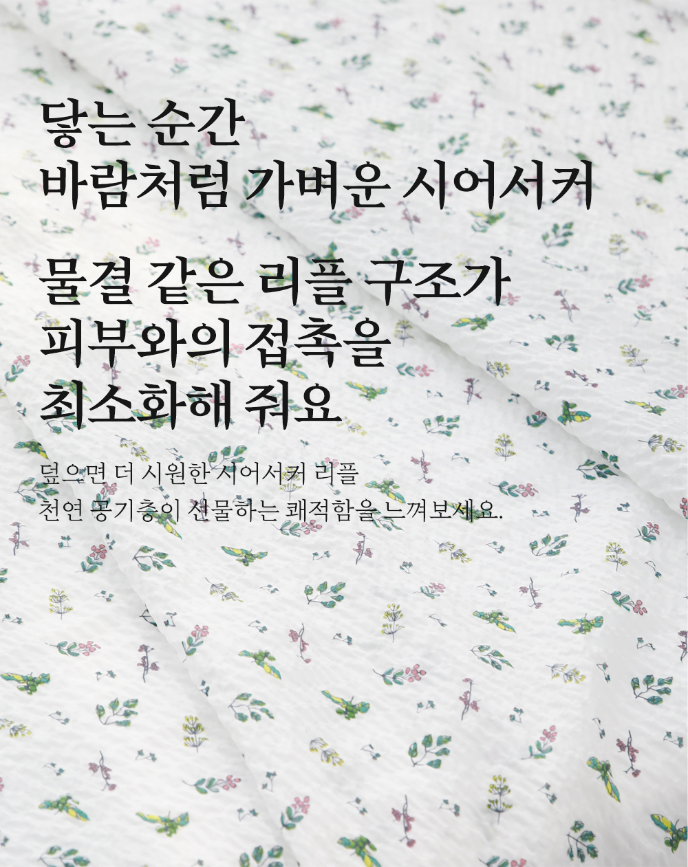 ![]() | 겉감 : 시어서커리플 (폴리에스터 100%)충전재 : 폴리에스터 100%패드뒷면 : 세미마이크로 (폴리에스터 100%)토퍼뒷면 : 미끄럼방지 원단 (폴리에스터 100%) |