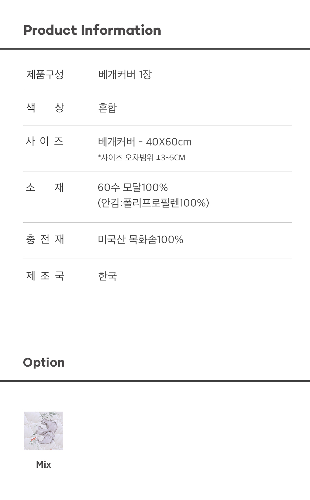 (대구신세계)더하우스 치카 모달 목화 누비베개커버 (40X60)