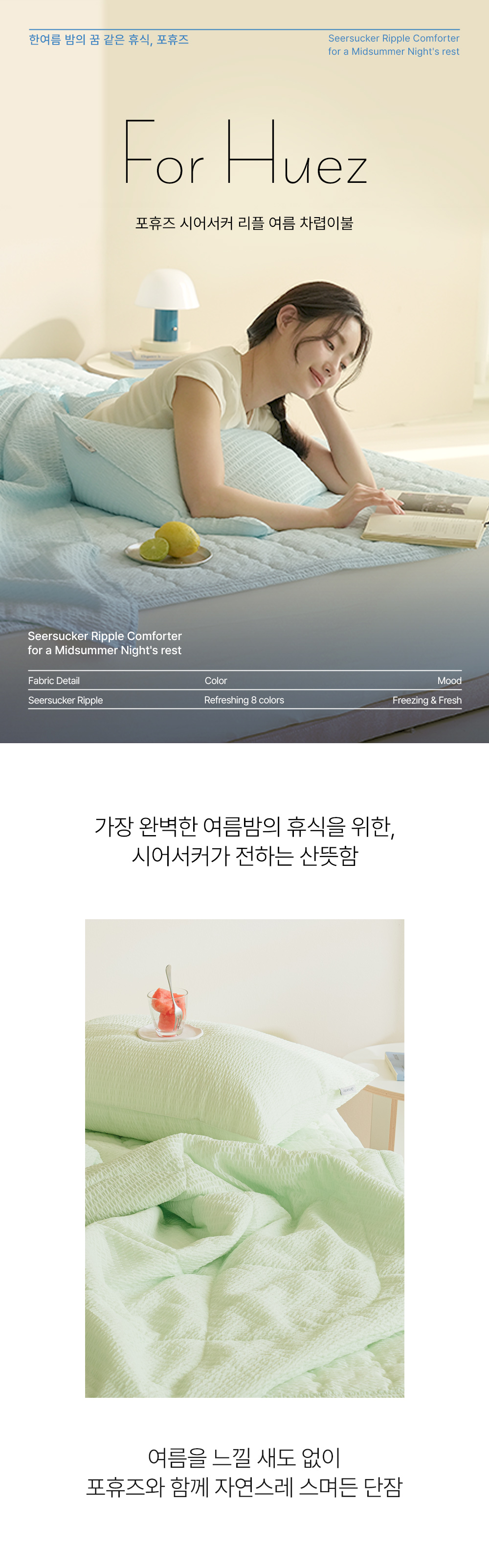 포휴즈 시어서커 리플 여름 차렵이불 단품세트 SSQK 8color