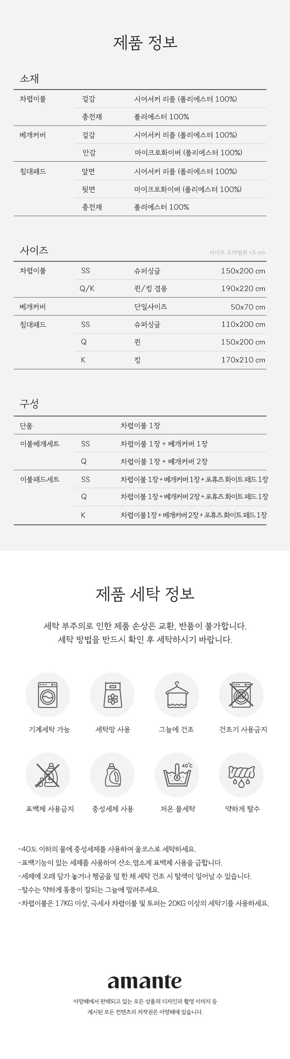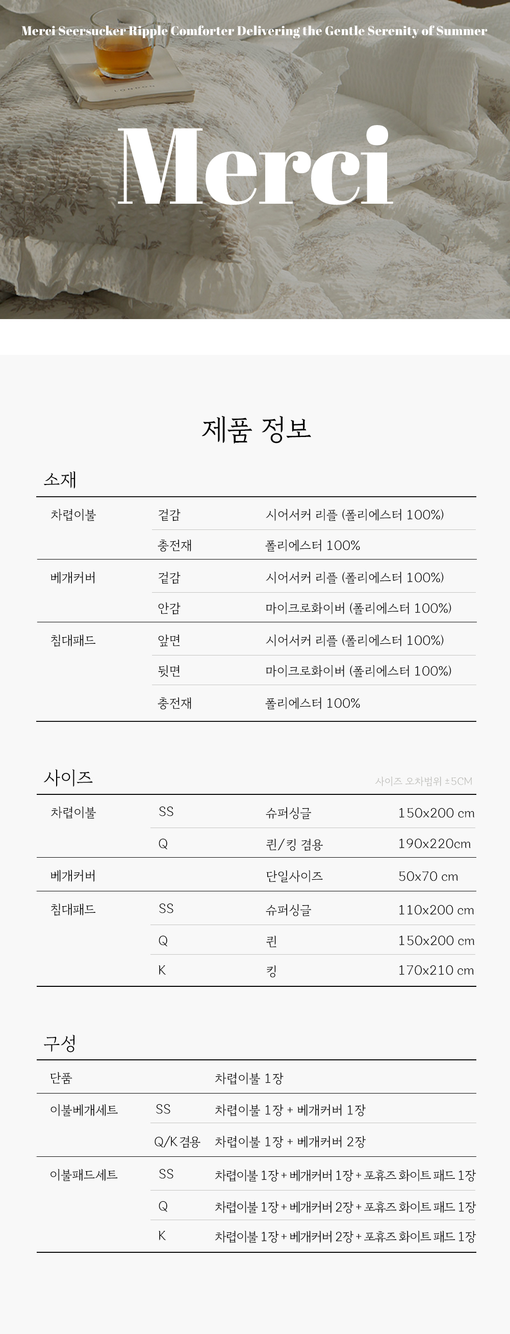 메르시 시어서커 리플 여름차렵이불 침구세트SSQK