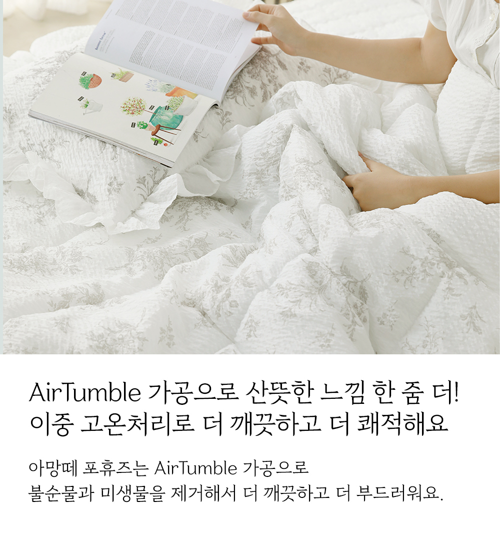 세척/세탁방법 1. 미지근한 물에서 약하게 손세탁 또는 세탁기 울코스로 세탁하세요. 2. 중성세제를 사용하여 세탁하십시오.(염색제, 표백제 사용 금지) 3. 단독 세탁 하십시오. 4. 약하게 짜서 그늘에서 건조하십시오. 5. 삶지 마십시오.