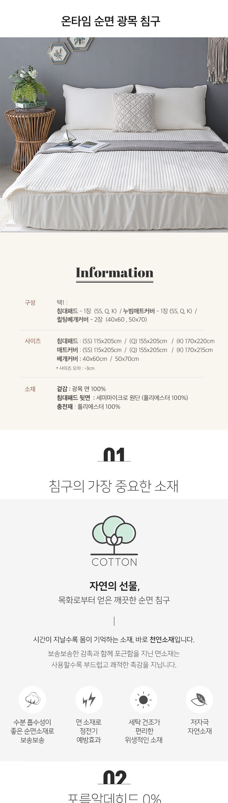 ![]() | 택1 : 침대패드 1장 / 매트커버 1장 / 베개커버 2장 |